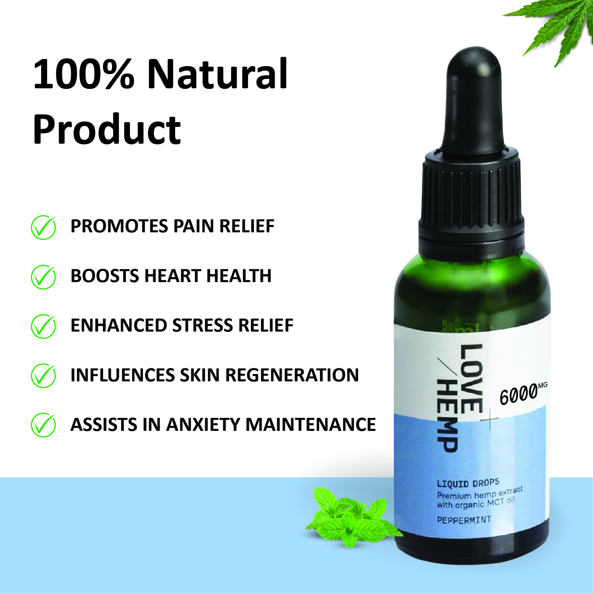 LoveHemp Broad Spectrum Oil Drops 6000mg Peppermint Flavour 30ml