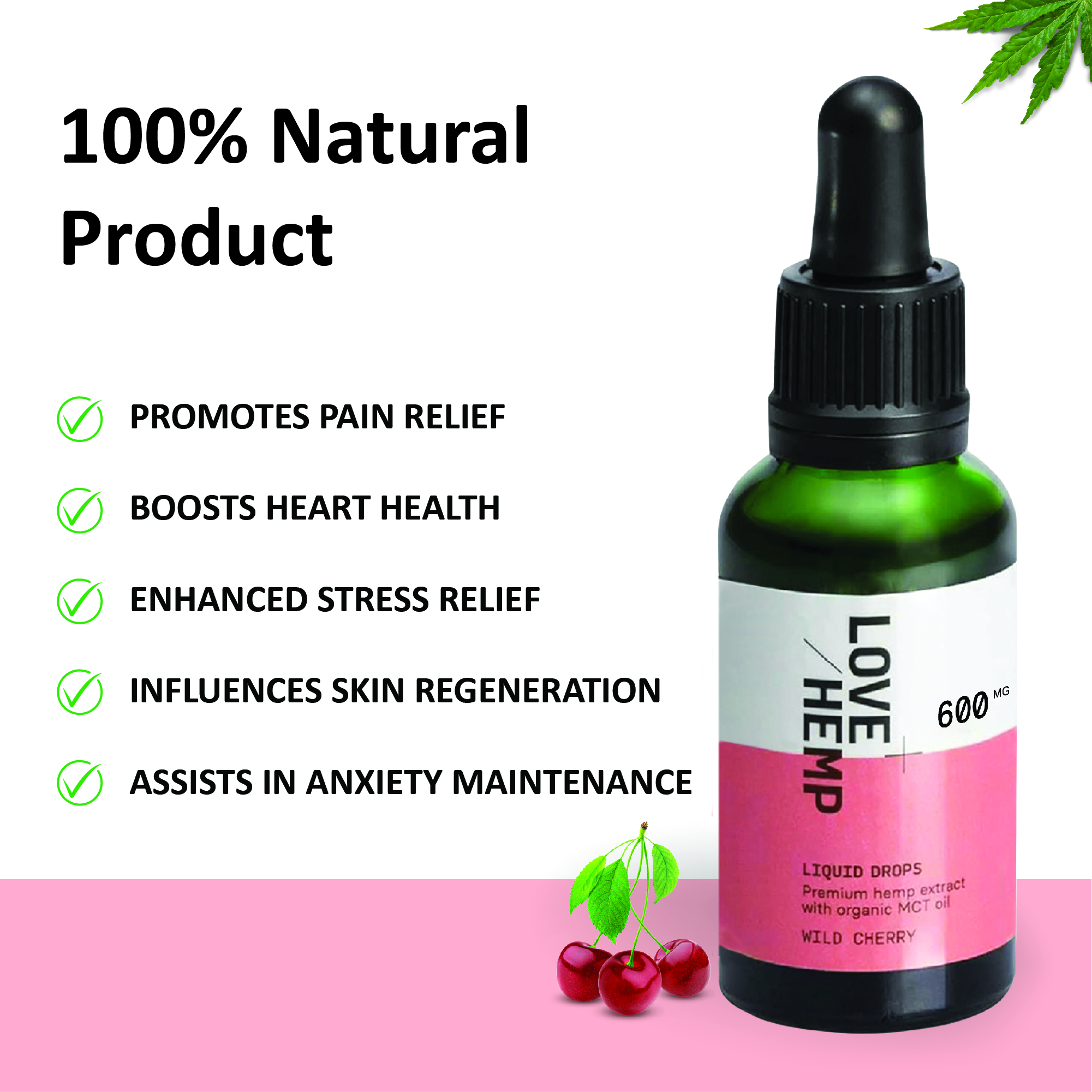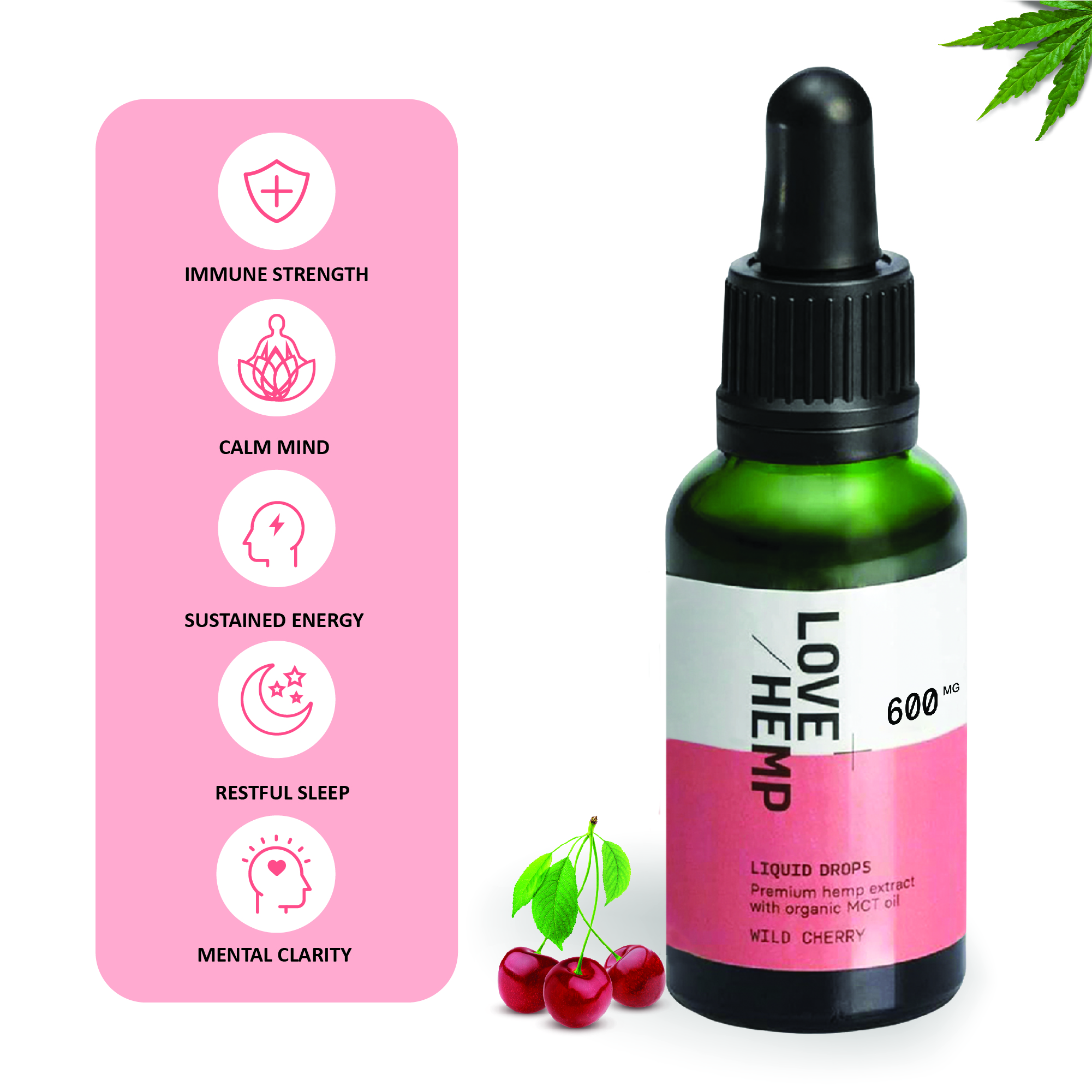 LoveHemp Broad Spectrum Oil Drops 600mg Cherry Flavour 30ml